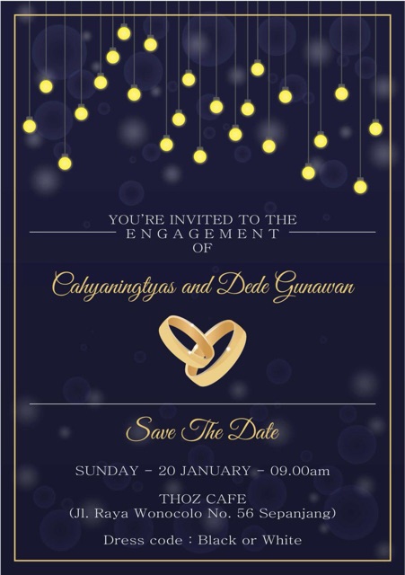 Undangan pernikahan, khitanan model elegan, minimalis dan murah 18. Di artikel ini juga anda bisa download desain undangan pernikahan format doc dan cdr bisa diedit. Mulai dari undangan resmi, rapat, pernikahan, yasinan, ulang tahun, aqiqah, dll. 20 ucapan selamat tunangan bahasa inggris dan artinya simakterus. Biru dengan aksen bunga merah muda. Contoh hasil undangan tunangan secara virtual. Tempat cincin rustic model d untuk lamaran, pernikahan atau tunangan. Jenis isi contoh undangan pernikahan 2019 ter lengkap . Menampilkan foto kedua mempelai pada kartu undangan dapat menjadi daya tarik tersendiri. 10 contoh undangan pernikahan bahasa inggris dan artinya contohtext , wishing you a . 10 contoh undangan pernikahan bahasa inggris dan artinya. Mohon maaf kalau anda tidak berkenan. 10 website untuk membuat desain undangan pernikahan online ini dapat kamu jadikan referensi untuk membuat undangan pernikahanmu lho.